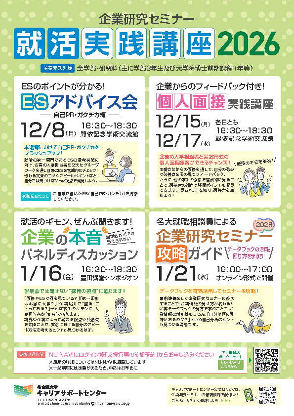 2026卒 名大生のための就活相談会(12月)
