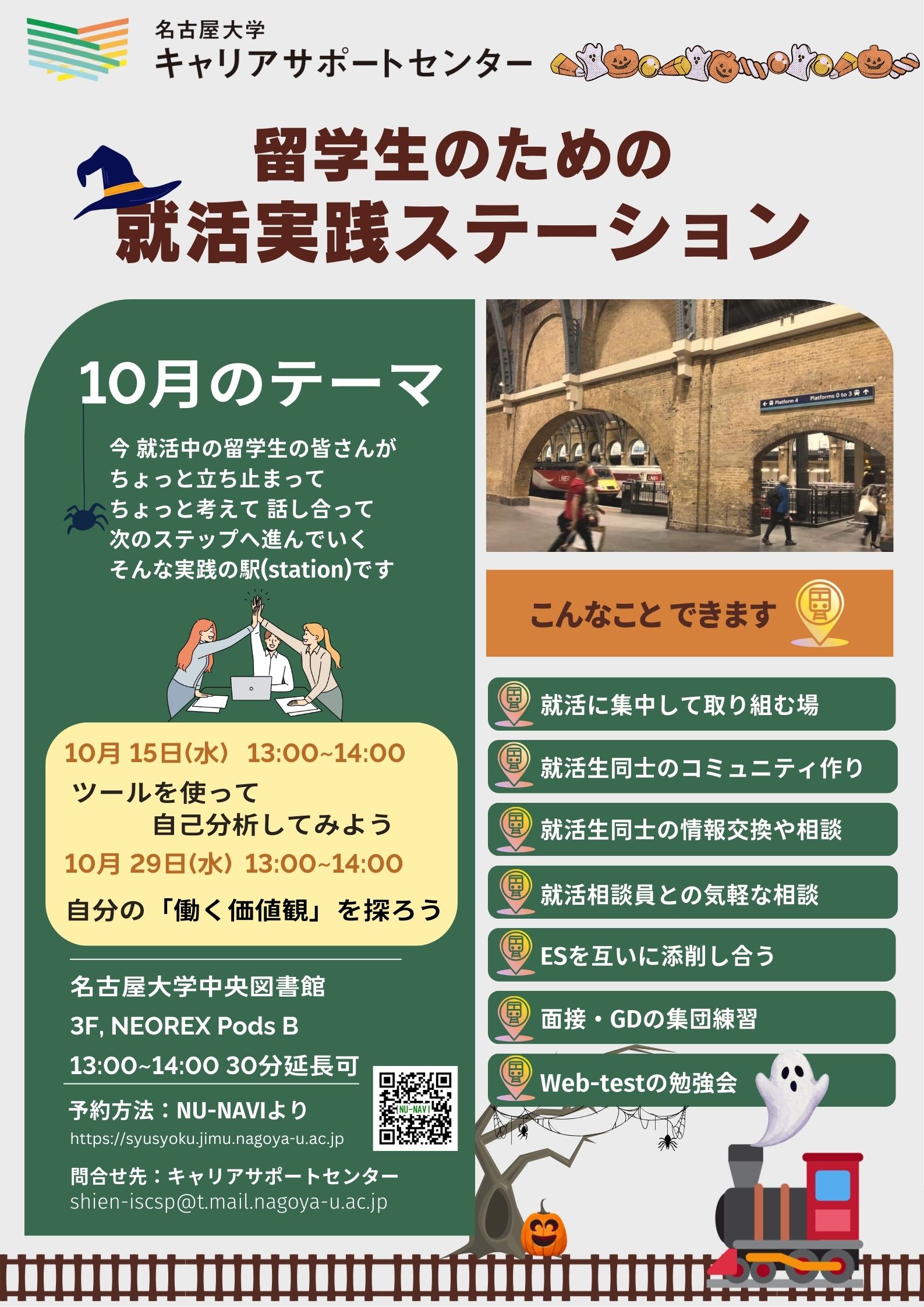 留学生のための就活実践ステーション 2024.1.16 留学生のための就活実践ステーションShukatsu Station for Intl. Students October 15th and 29th, 13:00-14:00 Central Library 3F, NEOREX Pods B Waiting for your participation!