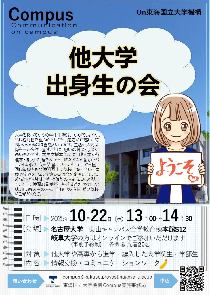 対象:名古屋大学・岐阜大学の学生で、他大学や高専から進学・編入した大学院生・学部生
