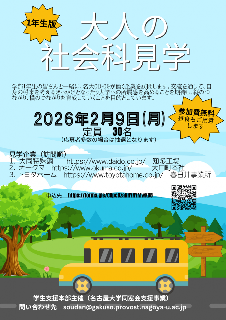 名古屋大学同窓会支援事業の一環として、「大人の社会科見学」を企画しました。訪問先企業は、一度は耳にしたことのある企業となっています。